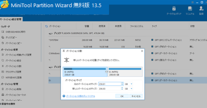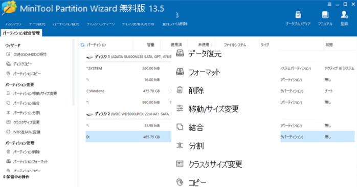 MiniTool Partition Wizard 無料版パーティション管理の使い方