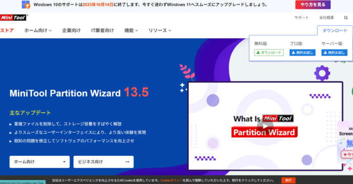 MiniTool Partition Wizard 無料版ダウンロード方法