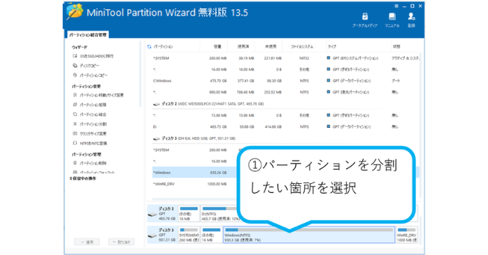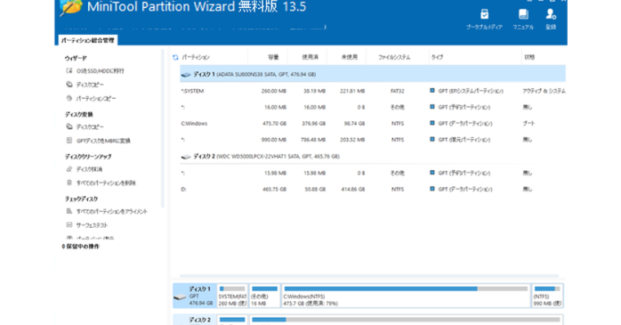 MiniTool Partition Wizard 無料版パーティション管理の使い方