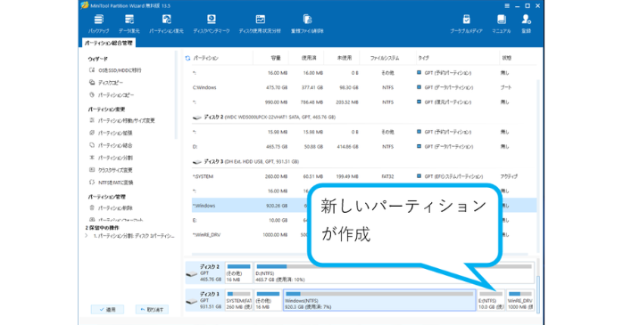 新しいパーティションが作成されました。